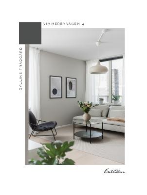 Parkettgolv och greige väggar. Utgång till balkong med trall i norr.