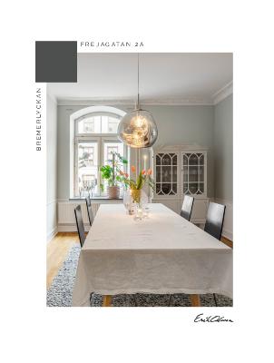 I fil med detta rum hittar vi ett rymligt sällskapsrum med en vacker kakelugn i blickfånget. Fräsch och ljust tack vare de höga fina fönsterna men väldigt skönt att lägenheten ligger just en halvtrappa upp för att slippa insyn från promenerande.