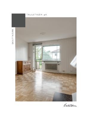 Brf Talldungen. Föreningen är en äkta bostadsrättsförening. I föreningen finns 26 bostadsrätter samt 1 lokal. Föreningen registrerades 2006. Till föreningen hör adresserna: Tallstigen 4A-C. Föreningen äger marken. Lägenhetsförråd finns på vinden samt ett matkällarförråd i källaren. Vindsförråden är rymliga. I källaren ligger den gemensamma tvättstugan som är utrustad med en tvättmaskin och en torktumlare. I trappuppgång 4B finns en till tvättstuga. I källaren finns även ett cykelrum. Föreningen planerar en avgiftshöjning inför årsskiftet men hur stor den blir är inte fastställt i dagsläget, per 2025-11-14. Samtliga eldstäder i föreningen är registrerade som obrukade på föreningens begäran. Informationen ovan är hämtad från styrelsen, föreningens årsredovisning samt stadgar. Vi råder dig som köpare att kontrollera fakta som är av vikt för dig. Vi som mäklare eller Erik Olsson ansvarar ej för att uppgifterna från dessa källor är korrekta. Senaste kontroll utfördes 2025-11-14.